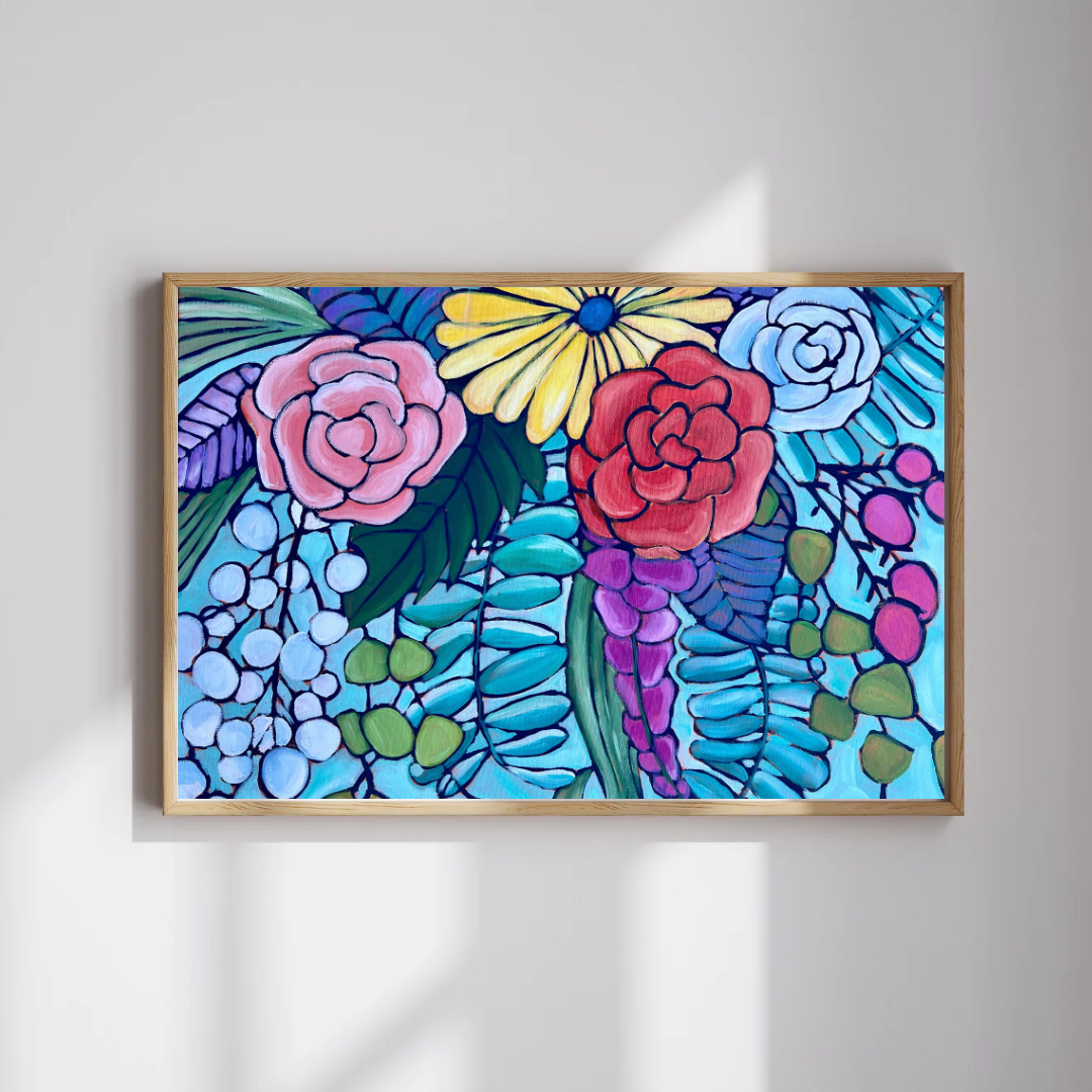 Happy, bold, 5x7 floral print of my original artwork printed with high quality ink on premium presentation paper in a matte finish.